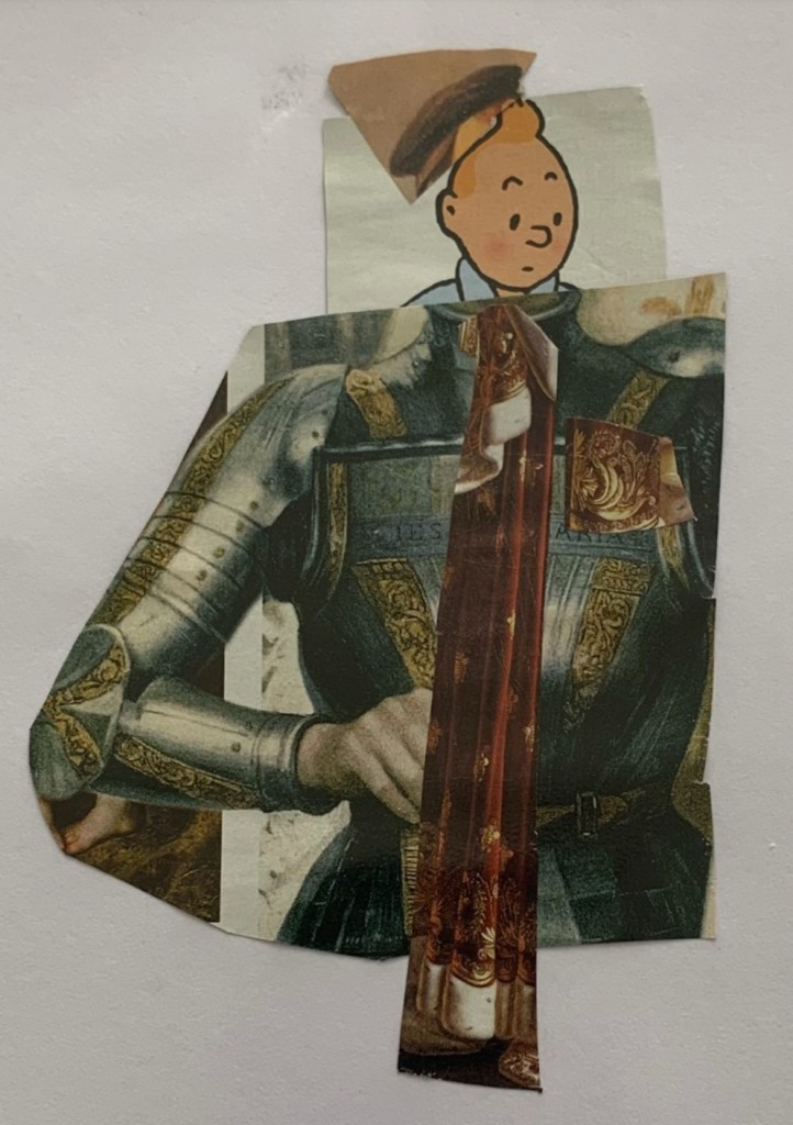 J’ai découvert votre tableau en visitant le musée ce week-end, où est exposé votre autoportrait. Je me suis attardée longuement à analyser ce que cette œuvre pouvait révéler de vous. J’ai été notamment surprise de voir un corps enfermé dans une armure, alors que le visage représenté par Tintin est plutôt enfantin. D’ailleurs, il est bien caractérisé par le titre, qui n’est nommé un “petit” Marco. Je me demande également si vous êtes comme moi, français, car vous représentez votre autoportrait avec un béret, ou bien si vous envisagez de devenir prochainement français, car le titre de l’œuvre évoque un rêve annonciateur de la vie du petit Marco dans 28 ans. Je n’ai pas su décoder la représentation du cylindre marron et blanc, qui part du cou jusqu’au bassin, en passant par la main droite. Comme le titre traduit une annonce, j’ai pensé qu’il pouvait s’agir d’un micro dans lequel le petit Marco crie qu’il devient, 28 ans plus tard, fort dans une armure d’homme, qu’on ne peut pas briser. Je serais ravie d’avoir la chance de vous rencontrer pour connaître la signification exacte de votre autoportrait et surtout évacuer de ma mémoire l’idée fausse que j’ai pu m’en faire en l’observant longuement aujourd’hui.