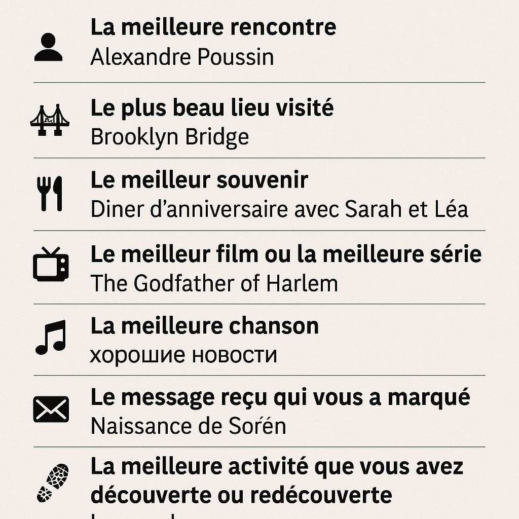 Consigne : En vous remémorant 2023, narrez vos “best of” en matière de :