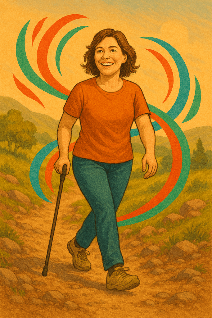 Mon ennemi est le déséquilibre, car je marche en penchant à droite et je dois vite me rattraper sur le pied gauche. En général, on n’aime pas notre ennemi. Mais s’il faut en désigner plusieurs et sélectionner celui qu’on préfère, je dirais que mon déséquilibre est celui que je préfère, car je le combats chaque seconde, lorsque je pose ma canne à droite pour me rattraper et que j’appuie sur mon pied gauche pour reprendre l’équilibre. Alors mon ennemi, le déséquilibre, est battu chaque seconde et il peut toujours tenter de me faire tomber, c’est raté d’avance. Je suis trop persévérante.